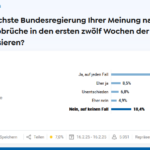 von Thomas Schneider Das Umfrageportal 'Civey' kommt in einer repräsentativen Umfrage zum Thema 'Recht auf Leben' zu einem erschütternden Ergebnis. Zur Frage "Sollte die nächste Bundesregierung Ihrer Meinung nach Schwangerschaftsabbrüche in den ersten zwölf Wochen der Schwangerschaft legalisieren?" haben von den 5051 Befragten (Stand: 16.02.2025, 16:50 Uhr) 61,4 Prozent … [Weiterlesen...] ÜberFast zwei Drittel für Legalisierung von Mord